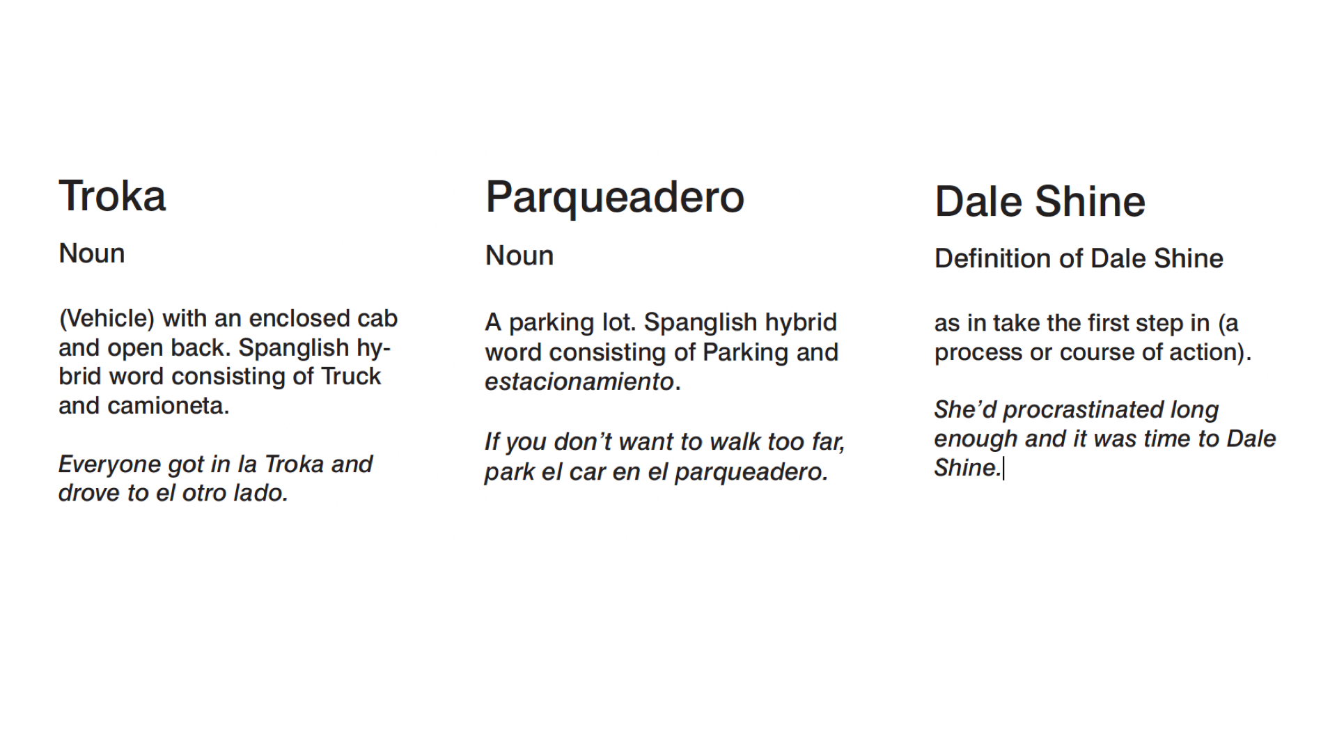 Spanglish phrases have been historically misunderstood, diminished and even deemed improper outside border communities. Some unique phrases are created by border communities, while others are widely known and used all along the U.S - Mexico border and internationally.
